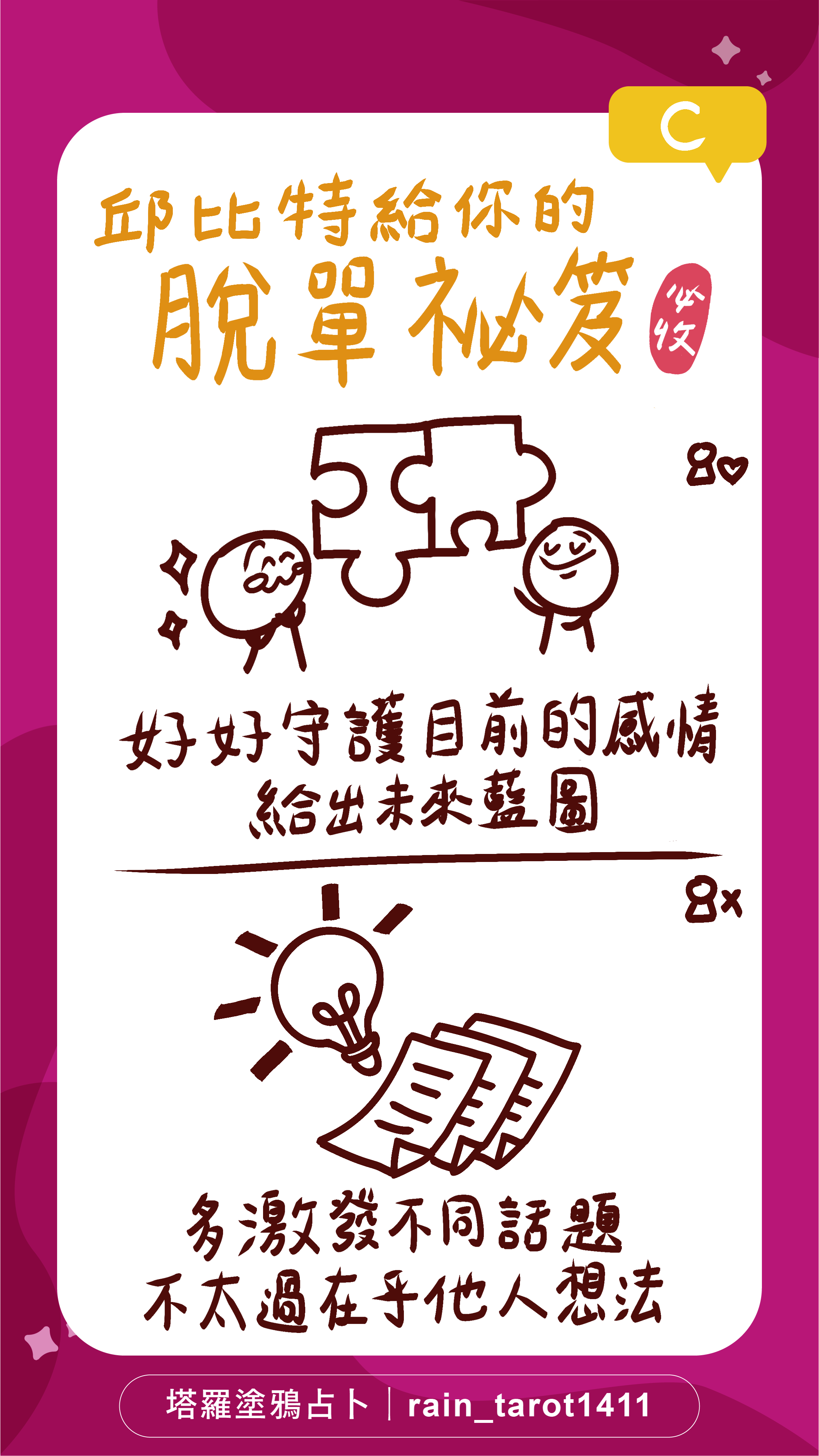 ▲圖卡【上半部】為【已有暗戀對象朋朋】的圖解;【下半部】為【沒有暗戀對象朋朋】的圖解,別搞混了唷