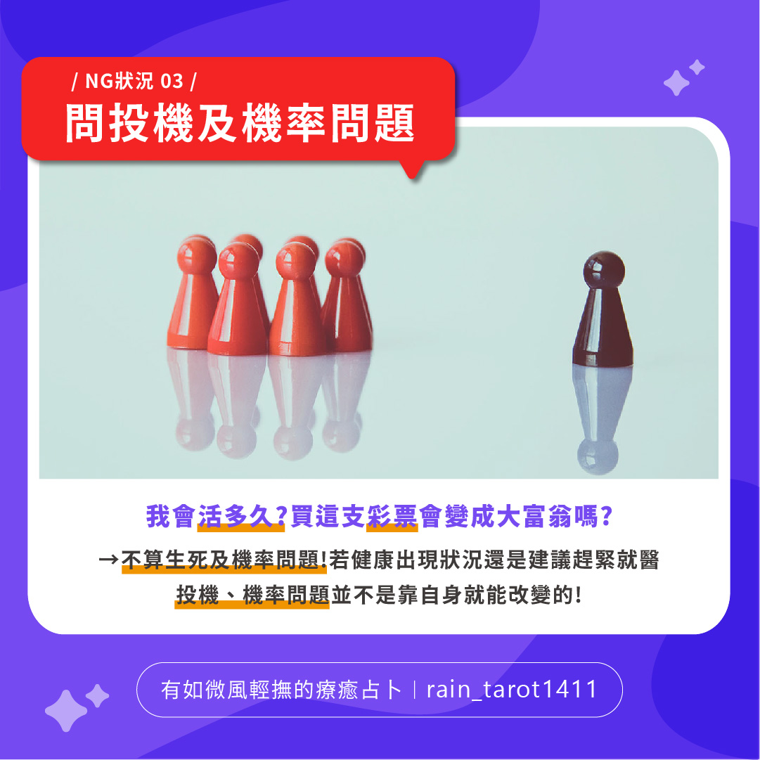 其次,樂透、抽籤、中獎等機率問題並非靠主觀努力改變,因此也不適合占卜