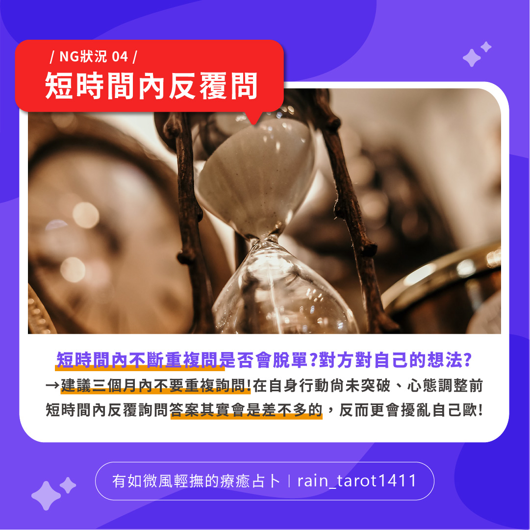 塔羅反映的是「當下」的趨勢。若自身沒行動改變,重複提問反而會讓自己更混亂